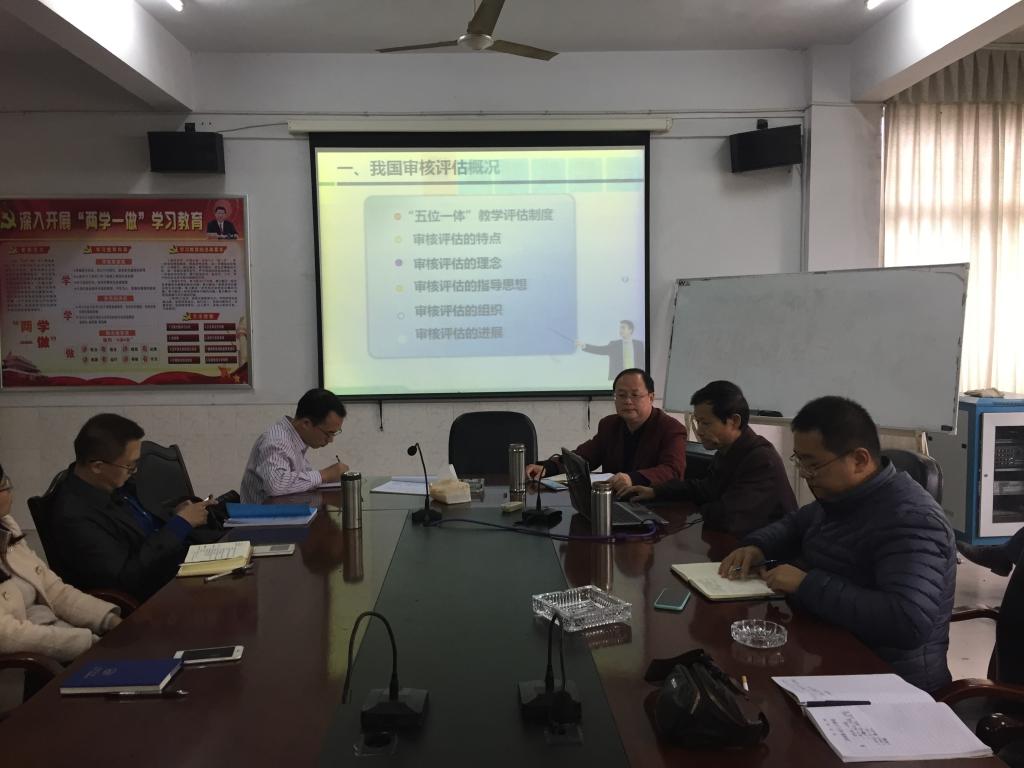 会议上,彭金璋经理首先就评估工作给全院教职工作了主题讲座,他首先对我国“五位一体”评估制度给大家做了简要介绍,使大家进一步深入了解了水平评估、合格评估、审核评估的目标定位和区别,然后就审核评估从“评估理念”、“评估思想”、“评估原则”、“评估的重点”、“评估结果使用”几个方面进行了更深一步的阐述说明。之后,彭金璋经理从目标定位、团队队伍、教学资源、教学过程、员工发展、质量保障和办学特色几个方面对公司近几年的教学工作自评对全院教师作了汇报,并听取了大家的意见。