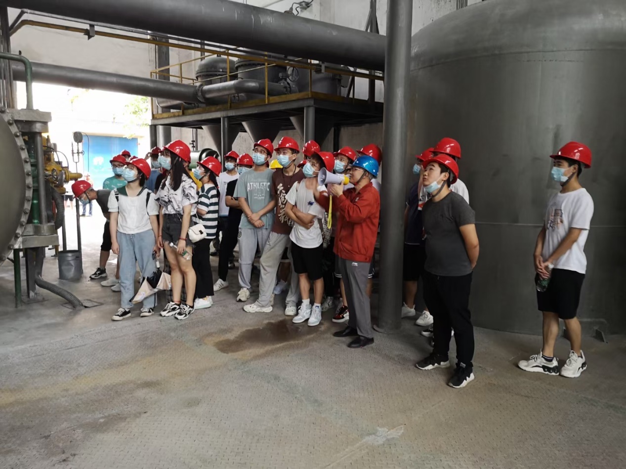 听完讲座后,同学们分两队在员工师傅的带领下前往参观工厂。首先参观的是铝锭熔化及雾化车间,在工程师的介绍下,同学们认识了铝锭融化炉以及雾化发生的设备,融化后的铝液在压缩空气的作用下通过喷嘴喷成雾状,雾状铝冷凝成粉末状。然后再将粉末状的铝运送至分级车间接下来我们参观的就是铝粉分级车间,由于铝粉在一定的浓度下遇电火花容易发生爆炸,所以在进车间之前,所有人员都进行了静电消除处理,铝粉的分级是粉体工程学中最基本的操作过程之一。最后,带队师傅带领大家参观了公司的技术检测实验室,这里是工艺成品的检测中心,刚生产出的铝粉成品会被抽样送往实验室进行检测,其中包括粒度分析、氮氧含量检测操作。参观完所有工艺流程操作后,同学们集体在公司正门口进行合影留念,与公司领导完成交接后,随后便乘车返回学校。