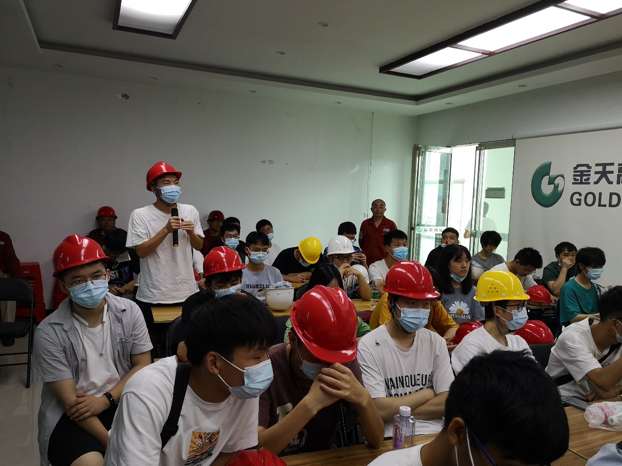 在到达金天铝业公司之后,同学们按照公司规定带好安全帽,脸上洋溢着对生产知识的憧憬。今天铝业公司领导表达了对同学们到来的热烈欢迎,公司的常务副总经理戴满生给同学们开展了一个专题讲座,介绍了金天铝业的发展历程,并详细分析了铝粉生产的工艺过程及其应用特征。同学们积极发言交流,不但对材料加工有了较深的认识,并且对金天铝业艰苦奋斗、敢为人先的事迹感触良深。