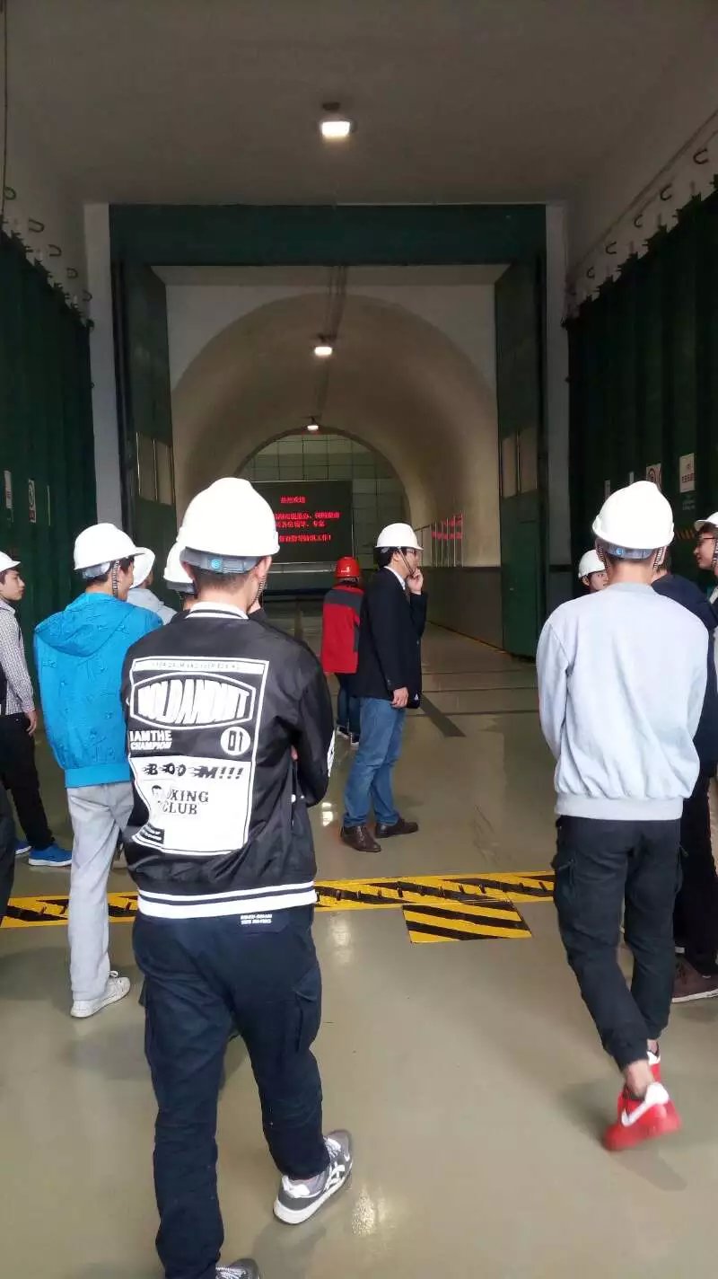 图为 同学们在凤滩内部参观学习