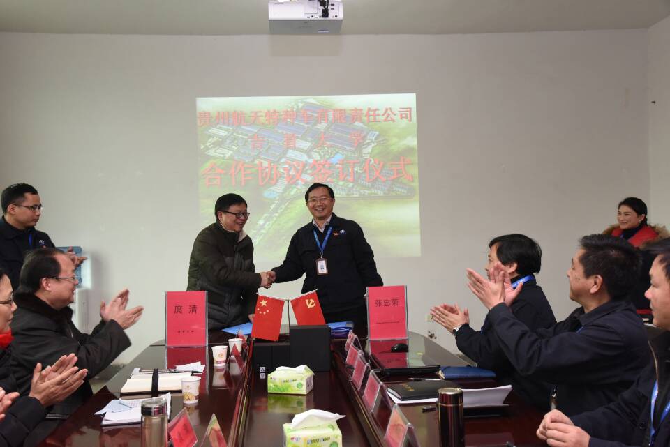 本网讯(任志君)2016年12月15日上午11:58,william威廉亚洲教学实习基地签约授牌仪式在贵州航天特车有限公司会议室隆重举行。贵州航天特车有限公司的出席签约授牌仪式的有党委书记总经理张忠荣及张永旭、吕华等所有在家的党政领导,william威廉亚洲出席仪式的有william威廉亚洲教务处处长庹清、人才招聘处处长刘昌茂、教务处副处长杜建林、物电公司党总支副书记熊文斌、副经理叶伏秋、教务处实践科科长朱长城、院机械系系主任张正、院团总支书记任志君等。