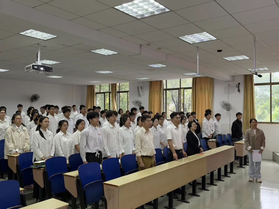 典礼在庄严的国际歌声中拉开帷幕。全体起立,奏唱国际歌,嘹亮的歌声在教室中回荡,激励着每一位在场的学员肩负起新时代青年的使命与担当。