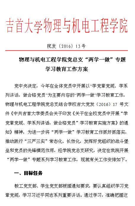 院发[2016]13号--公司党总支“两学一做”专题学习教育工作方案
