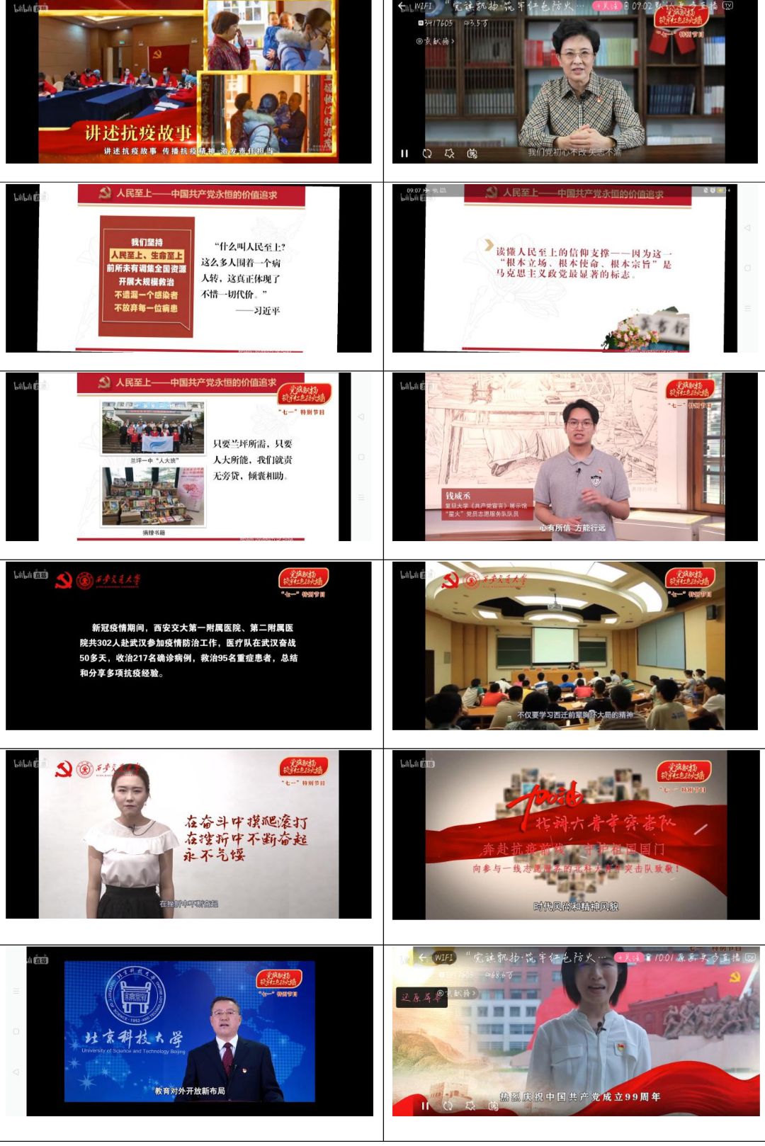 本期“七一”专题战“疫”示范微党课由中国人民大学、复旦大学、西安交通大学、北京科技大学4校的党委书记、基层党组织书记、教师党员、战“疫”一线志愿者们等从不同视角进行讲述。党课用鲜活的事例、详实的数据、深刻的感悟、生动的语言讲述了在突如其来的新冠肺炎疫情面前,在习近平同志为核心的党中央领导下,高公司党组织和党员挺身而出、英勇奋斗、冲锋在前的先进事迹。