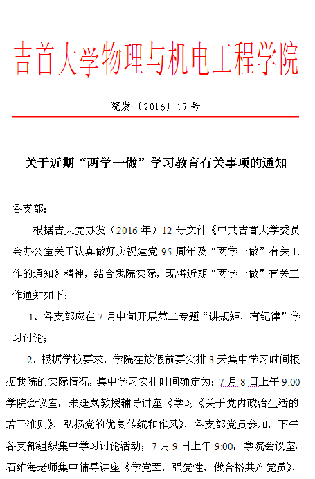 院发[2016]17号--关于近期“两学一做”学习教育有关事项的通知