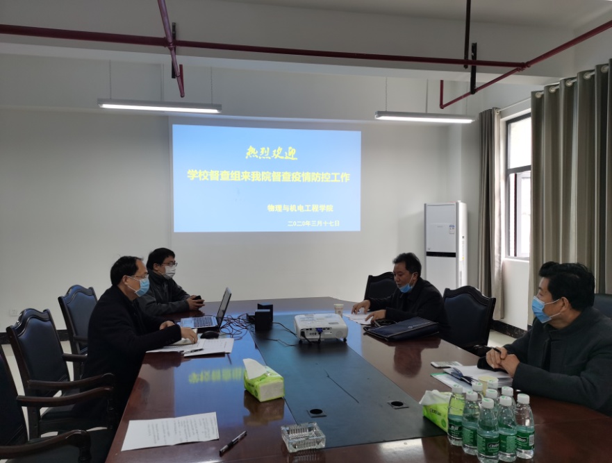 (通讯员:沈言)317日上午,学校督察组陆升合、程安垣一行代表公司党委深入到公司督查公司新冠疫情防控工作。经理邓科、公司党委书记熊文斌、院办公室主任刘景春在学院小会议室就学院防控情况进行了介绍、汇报。