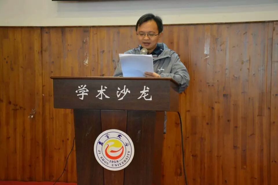 图为    卢明辉教授在研讨会上讲学