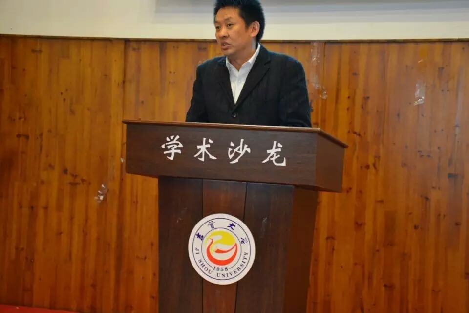 图为    鲍明研究员在研讨会上讲学