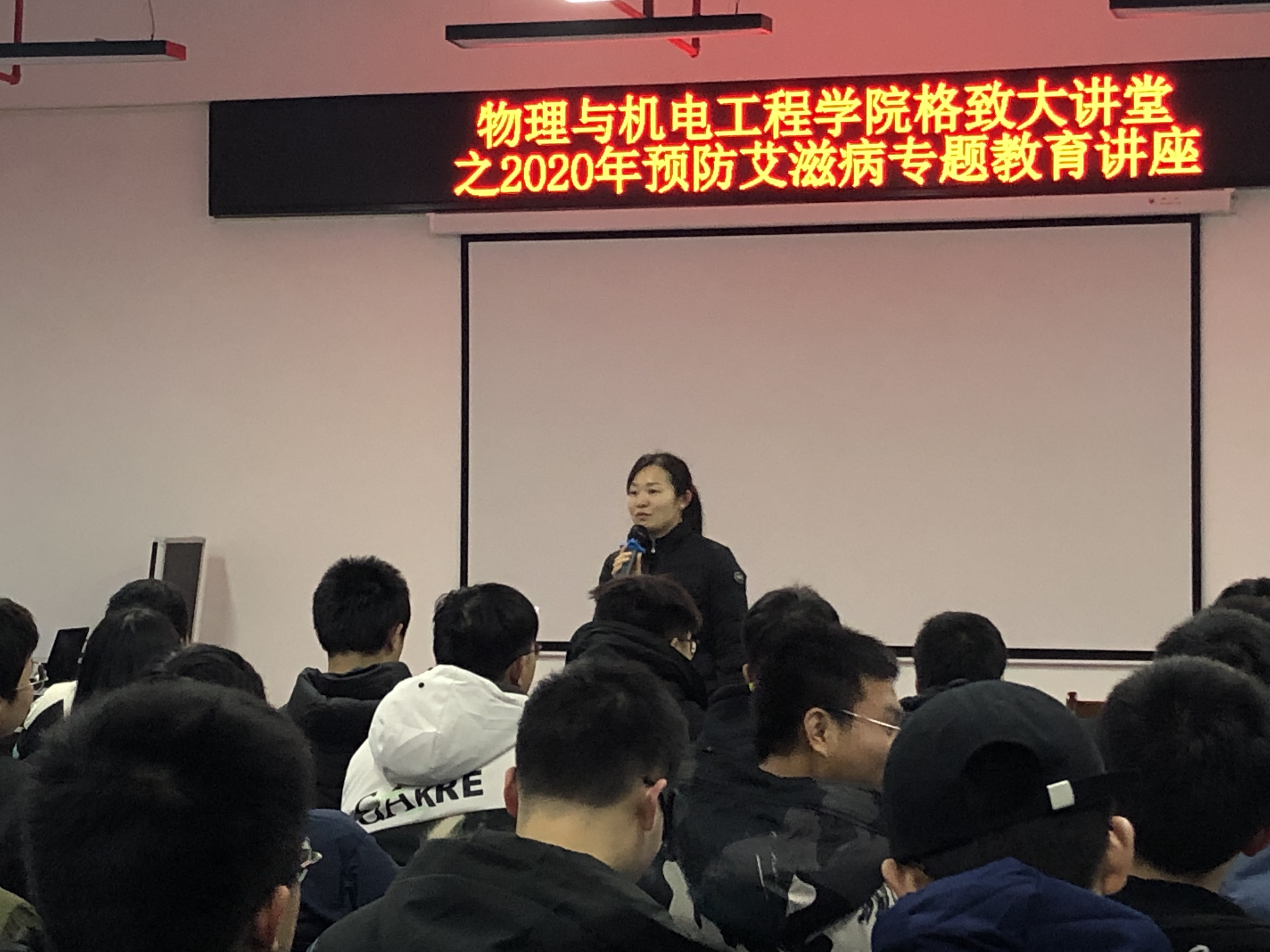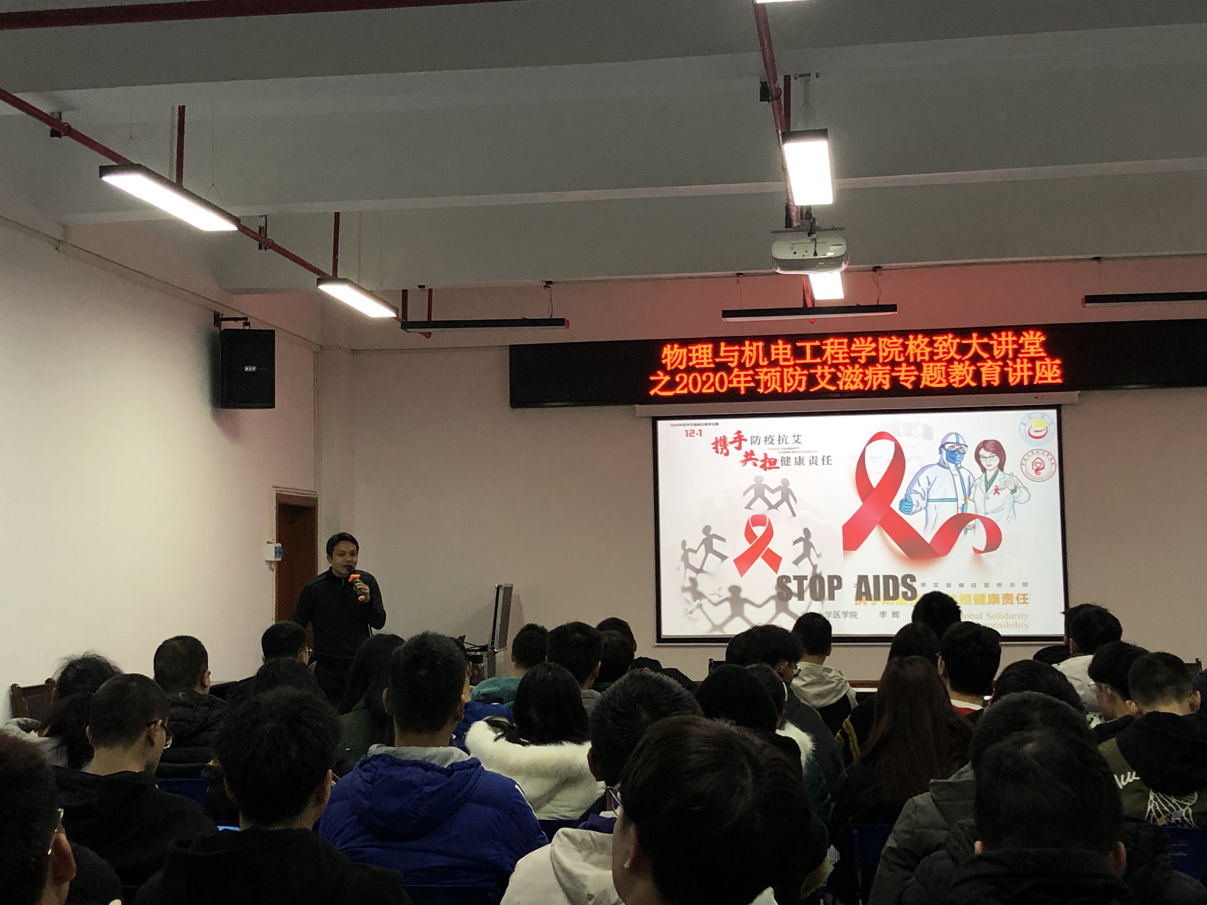 (通讯员 言西早)为进一步推进公司艾滋病防治工作,增强同学们防范艾滋病的意识,提高同学们有关艾滋病基本知识的水平,12月2日晚上,公司特邀请医学院检验系副教授李辉在工科大楼A101为公司员工开展预防艾滋病专题教育讲座,参加此次讲座的有公司党委副书记许斌、团总支副书记谭艳文及公司员工。讲座由团总支副书记谭艳文主持。