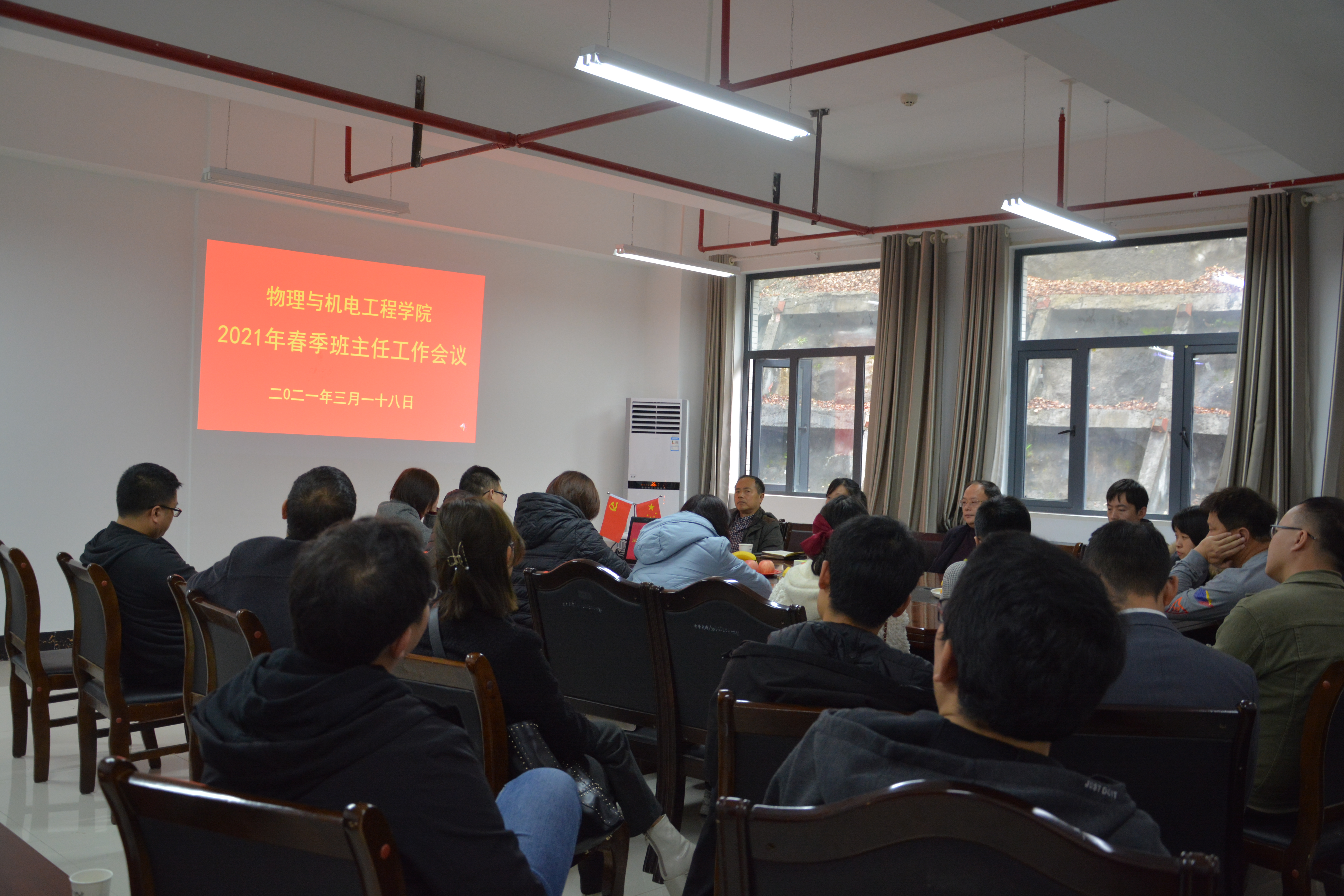 (通讯员 言西早)为进一步落实班主任工作,发挥其班级核心作用,更好配合学院开展新学期各项工作,3月18日中午,公司在第十二教学楼A421召开2021年春季班主任工作会议,公司党委书记熊文斌、党委副书记许斌及全体辅导员和班主任参加会议。会议由学工办主任朱姗姗主持。