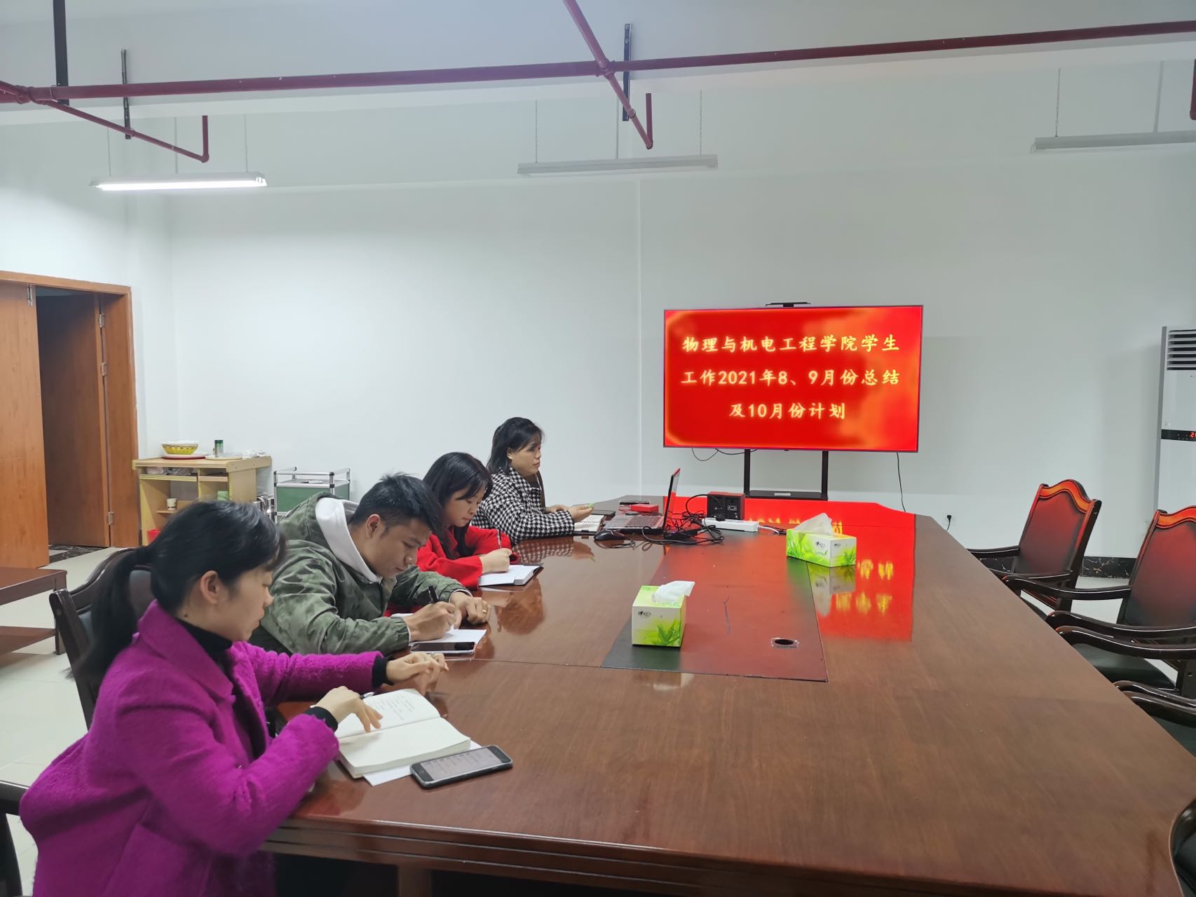 10月22日上午,公司在第十二教学楼A421会议室召开了8、9月员工工作总结暨10月工作计划会议。公司党委副书记许斌、学工办主任朱姗姗、团委副书记谭艳文、辅导员袁强参加会议。