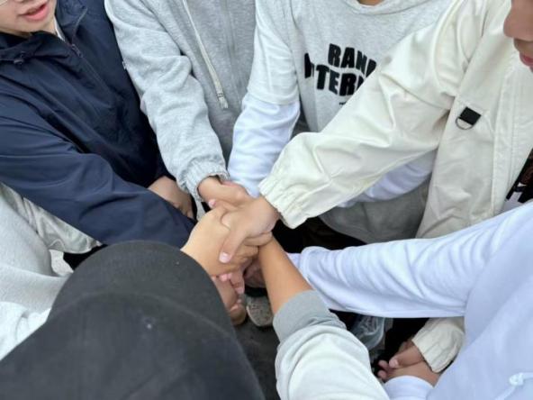 大家以组为单位开展了解手结、蜂王大战以及拔河比赛三项团体游戏。同学们在互动合作中凝心聚力,提升了沟通协作能力和创新思维。活动现场热闹非凡,其乐融融