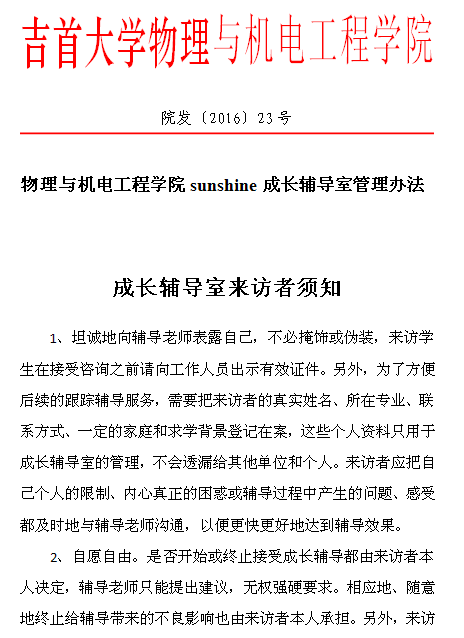院发[2016]23号--william威廉亚洲sunshine成长辅导室管理办法