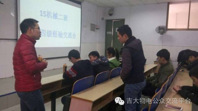 (通讯员骆佳银)11月25日中午12点30分,由15级机械二班主办的英语四级考试动员大会在总理楼60121教室隆重举行。14级机械二班的肖宇学长、刘荣学姐、14级机械一班的黄涛学长和马攸佳、曾婷学姐以及15级机械二班的班主任李剑老师和15级机械二班的所有同学参加了这次经验交流会。