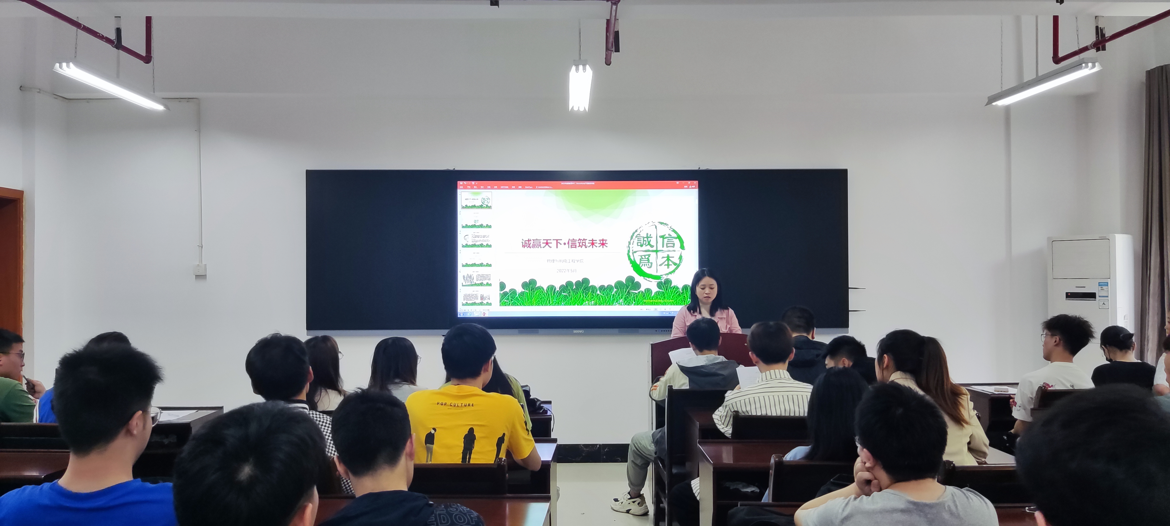 为进一步提高毕业生的诚信意识,提高资助育人水平,进一步做好助学贷款工作,增强学院毕业生诚信还贷意识和社会责任感。5月28日中午,公司在第十二教学楼A512会议室召开了2022届毕业生诚信教育大会。学院团委书记、2018级辅导员谭艳文及2022届毕业生员工参加此次大会。大会由谭艳文老师为主讲。