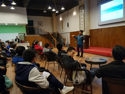 刘志勇博士报告了自己通过对杜仲胶的改性,实现形状记忆材料的制备,即利用化学交联法,使杜仲胶链上的双键发生部分交联,通过改变反应条件,获得了不同交联度的材料,并实现了其热响应的形状记忆功能。此外,他还汇报了所在课题组制备的电响应杜仲胶形状记忆材料。刘志勇博士用通俗易懂的讲解方式,让在场师生了解了形状记忆聚合物、以杜仲胶为基体的形状记忆材料以及在生活中的一些应用前景,这对提高杜仲胶的附加值,为湘西杜仲的开发与应用提供新的思路和应用研究基础,具有重要的意义。