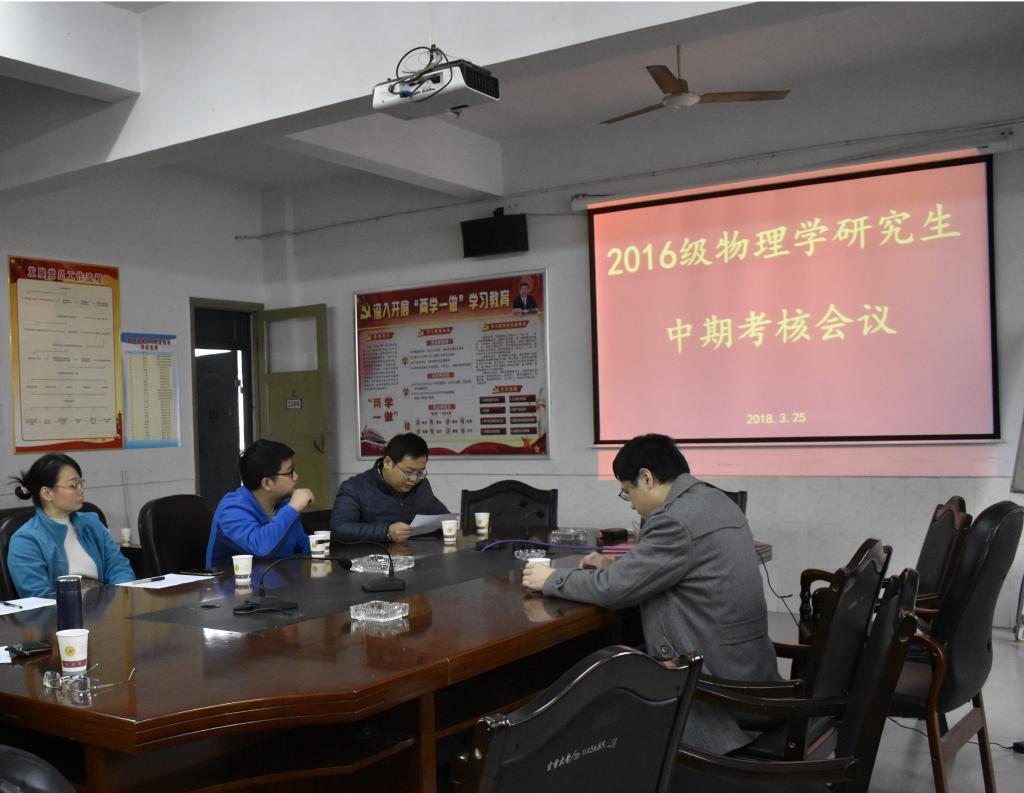 2018年3月25日上午9点william威廉亚洲召开2016级物理学研究生中期考核答辩会。校纪委书记、物理学科带头人赵鹤平教授、2016级研究生导师及学院所有研究生出席了会议。会议由经理助理黄勇刚博士主持。
