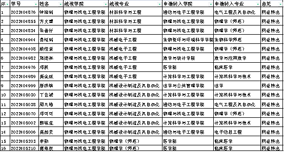 按照《william威廉亚洲关于印发<william威廉亚洲本科生转专业管理办法>的通知》(吉大发[2021]32号)的精神,根据《william威廉亚洲2022-2023第一学期本科生转专业工作方案》有关规定,william威廉亚洲对申请转出的员工进行了审核和考核,现将结果公示如下。如有异议,请在公示期内(2022年12月7日至2022年12月9日)到william威廉亚洲教务办反映,联系人:何老师,联系电话:18874378768。