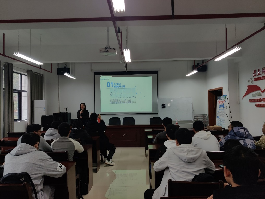 10月24日,则成电子来公司举行招聘宣讲会。首先,则成电子给同学们展示了公司的宣传图片,让同学们对公司有一定的了解。随后公司主讲人介绍了公司的企业文化,向同学们展示公司成立以来所发明的专利技术和发展方向以及公司未来的销售预测。